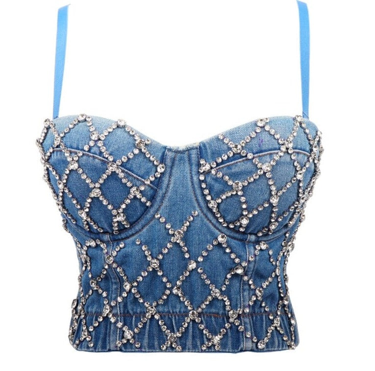 Striking design and immaculate construction make the camisole a must-have for any summer wardrobe. Comprised of a luxurious cotton-denim fabric blend, detailed rhinestone sequin styling and crafted for long-lasting comfort and support. Perfect dressed up or down, we know you’ll love the way you look and feel in this exclusive piece.